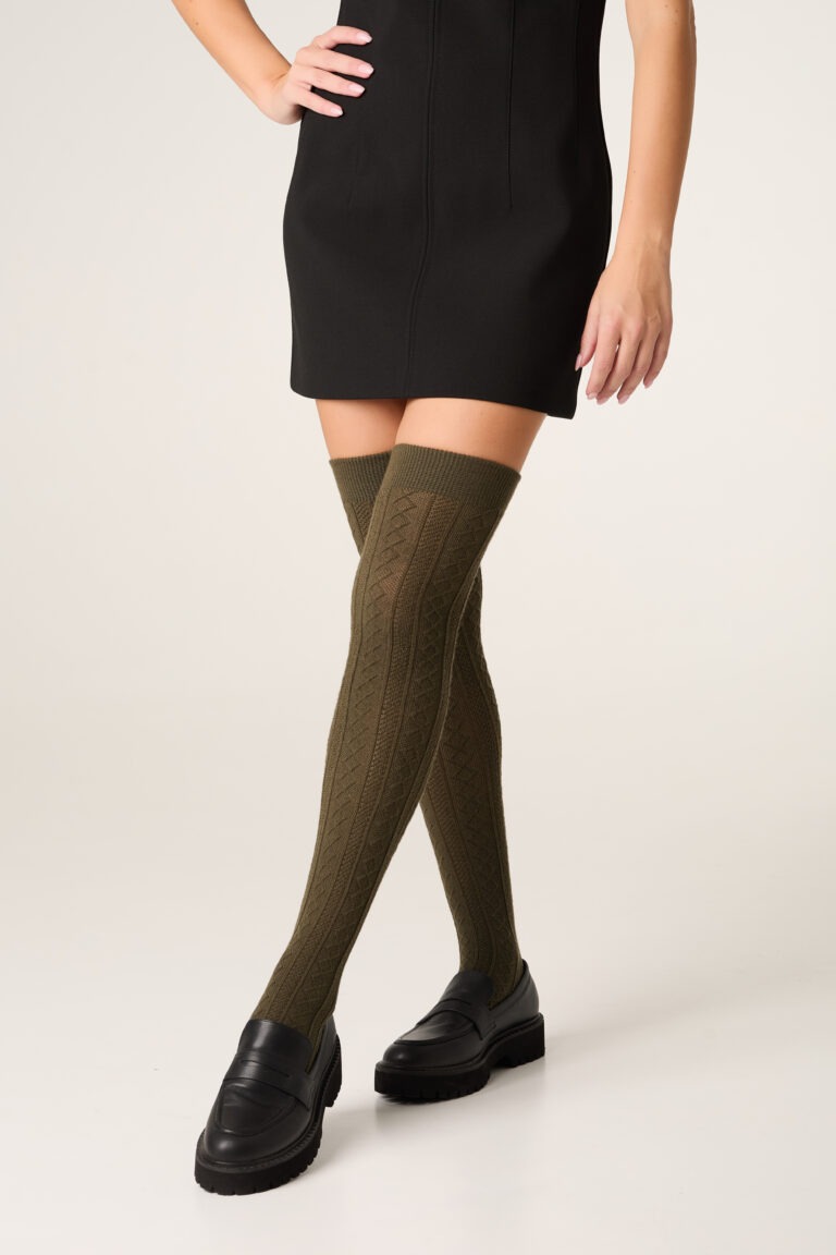 Ten model zestawiony z rajstopami i butami na obcasie w podobnym kolorze optycznie wydłuży nogi, a przylegające do ud delikatne ściągacze zapewnią Ci wyjątkowy komfort noszenia, bez uczucia uciskania nóg. Oprócz tego wzorzyste zakolanówki Lores posiadają niewidoczne wzmocnienia na palcach, które uwierają podczas chodzenia i sprawiają, że model jest niezwykle wytrzymały.