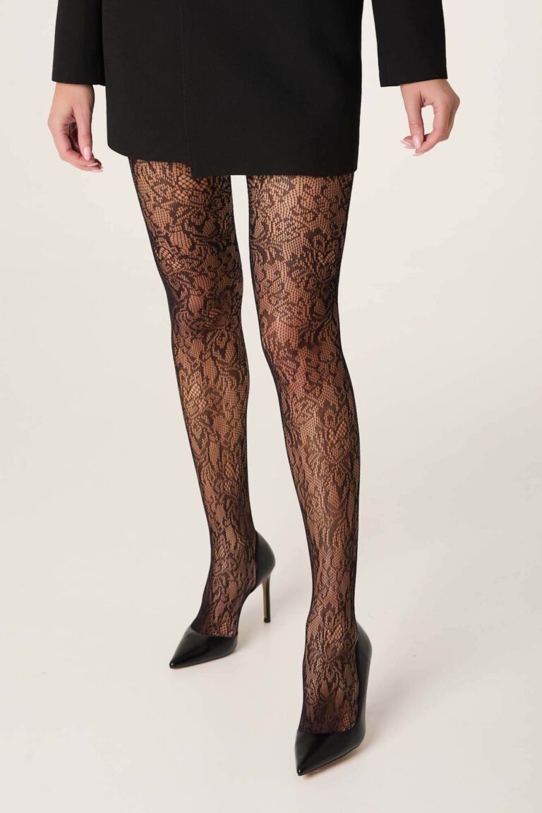Zmysłowe i eleganckie rajstopy FIORA od Lores to propozycja dla kobiet, które lubią podkreślać styl i kobiecość z nutą klasy. Wykonane z delikatnej siateczki o kwiatowym, koronkowym wzorze, pięknie oplatają nogi, tworząc efekt pończoch z koronki. Idealne na wieczór, randkę czy specjalną okazję – doskonale komponują się z małą czarną, szpilkami lub botkami.