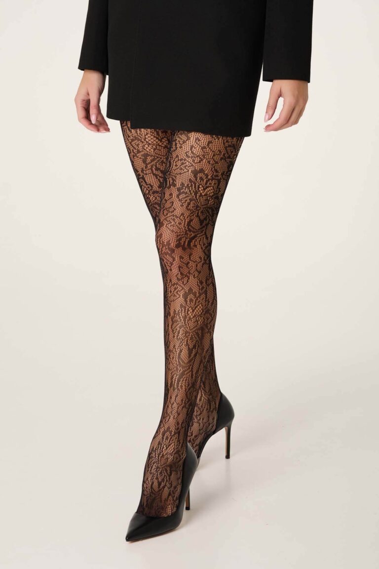neroRajstopy Lores FIORA – koronkowy wzór w stylu kabaretki